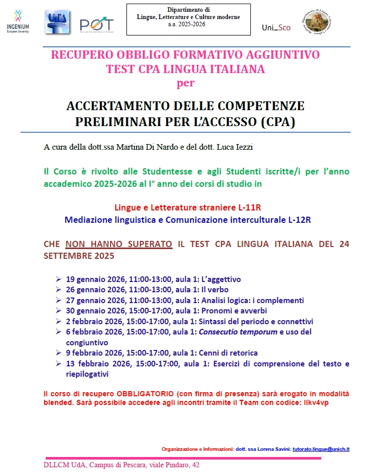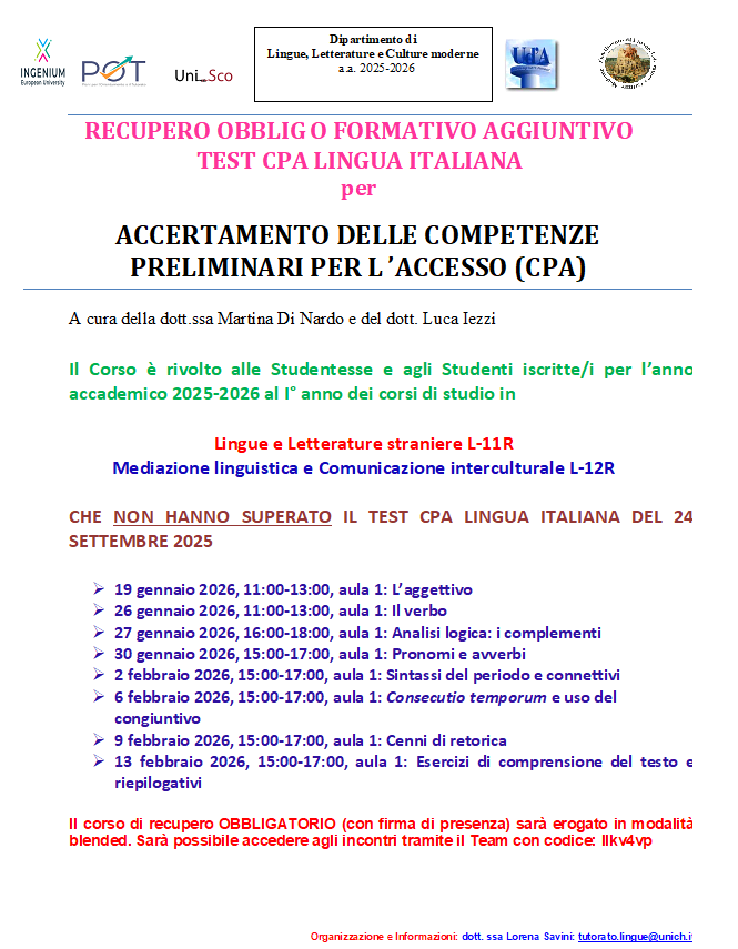 RECUPERO OBBLIGO FORMATIVO AGGIUNTIVO TEST CPA LINGUA ITALIANA per ACCERTAMENTO DELLE COMPETENZE PRELIMINARI PER L’ACCESSO (CPA)
