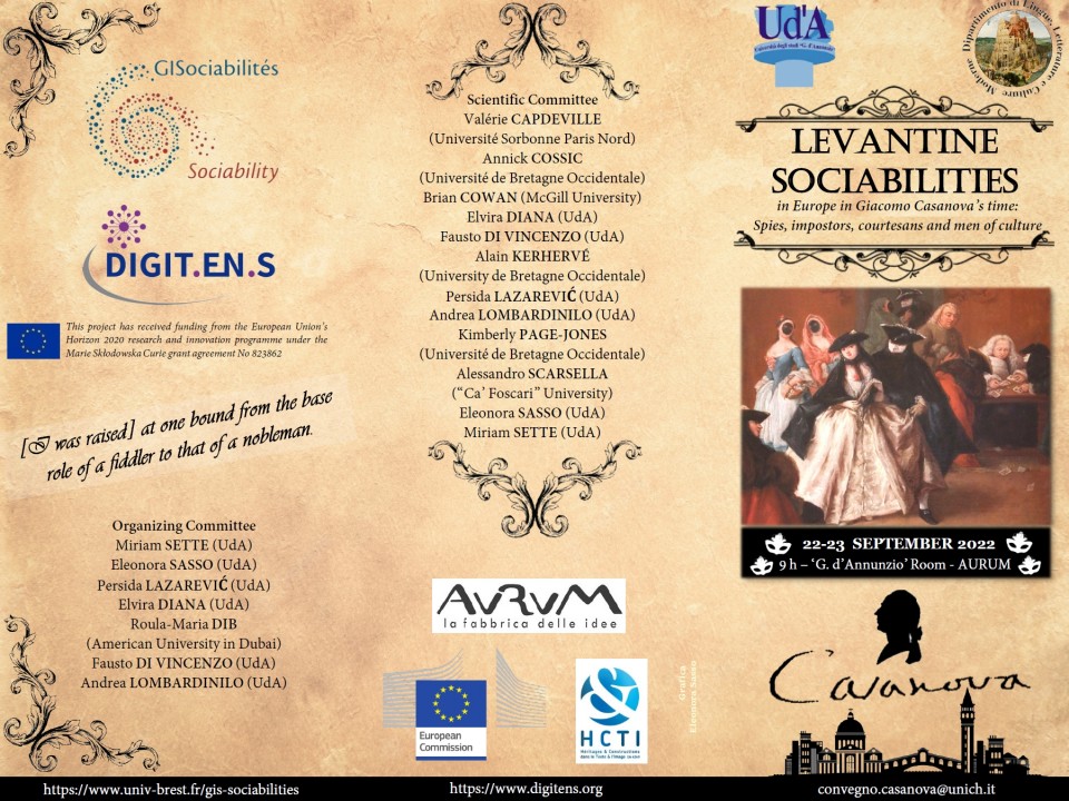 Convegno Internazionale - "Levantine sociabilities in Europe in Giacomo Casanova’s time: Spies, impostors, courtesans and men of culture" - 22 e 23 settembre 2022
