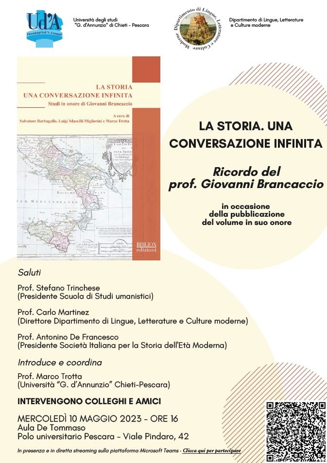 CONVEGNO - 'LA STORIA. UNA CONVERSAZIONE INFINITA' Ricordo del prof. Giovanni Brancaccio - 10 MAGGIO 2023