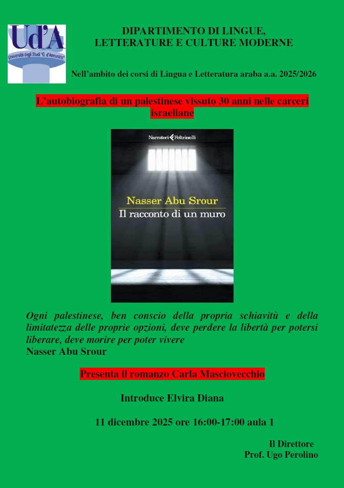 Presentazione del romanzo: 'L’autobiografia di un palestinese vissuto 30 anni nelle carceri israeliane' di Nasser Abu Srour - Giovedì 11 dicembre ore 16