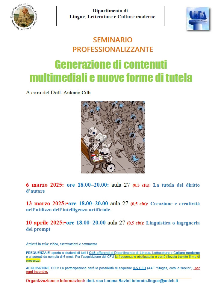 Seminario professionalizzante - "Generazione di contenuti multimediali e nuove forme di tutela" - 6 e 13 marzo, 10 aprile 2025